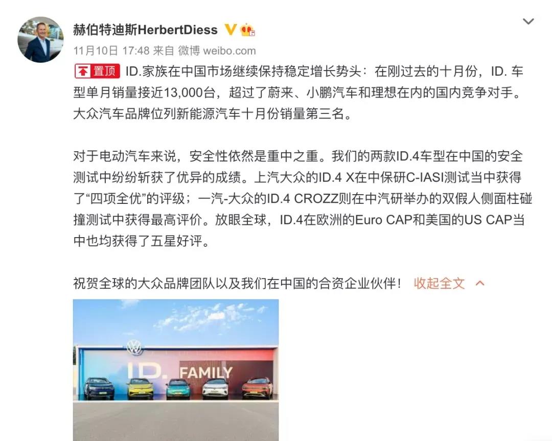 據(jù)了解,大眾旗下的德國工廠有茨維考工廠和德累斯頓工廠。而茨維考工廠主要負(fù)責(zé)生產(chǎn)大眾ID.3、ID.4、奧迪Q4 e-tron和Cupra Born等車型。值得注意的是,早幾日,大眾汽車集團(tuán)迪斯在社交平臺發(fā)文表示,ID.家族在中國市場繼續(xù)保持穩(wěn)定增長勢頭,十月ID.車型單月銷量為12376臺,超過蔚來、小鵬汽車和理想等國內(nèi)競爭對手。不能看出此次停產(chǎn),也將導(dǎo)致這些車輛供應(yīng)在短時間內(nèi)受到限制。