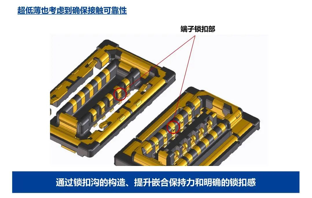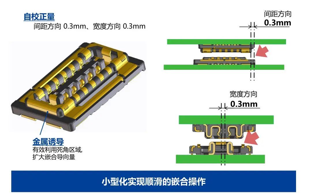 尺寸 省空間 防燥對策 RF特性(連接器單體) RF特性(連接器+FPC) 牢固構(gòu)造 端子鎖扣構(gòu)造 通過金屬誘導(dǎo)實(shí)現(xiàn)了較大的自校正量