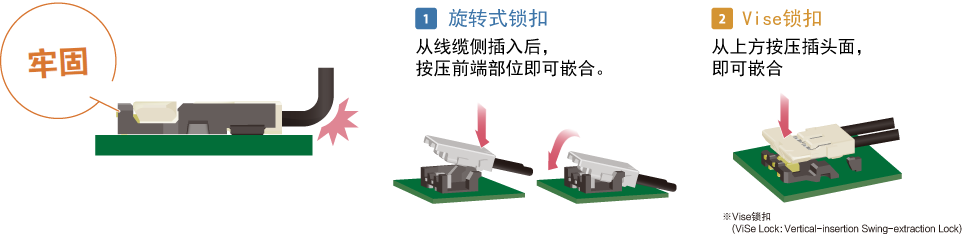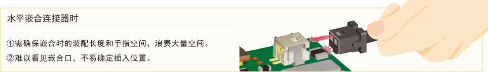 垂直嵌合不影響其他元器件,有效節(jié)省空間,提高基板設(shè)計(jì)自由度。采用從上向下的嵌合方式,易于確認(rèn)嵌合口,從而更好地確定插